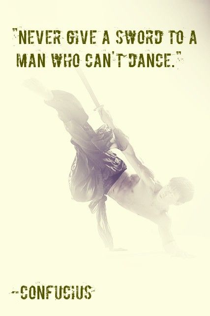 It primarily gets used as a caution to never trust power (the sword) to a person who lacks the skill, grace, or restraint (dancing) to use it responsibly. Some see dancing as the relational counterbalance to aggression, hostility, or war. And still others hear in it an appeal to balanced living—understanding the rhythms and seasons of life. The quote holds echoes of much older poetry from Ecclesiastes 3:8 “(There is) a time to love and a time to hate, a time for war and a time for peace.”